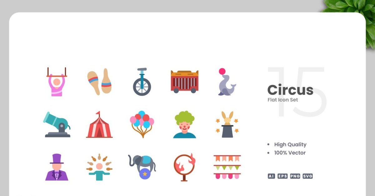 Set of 15 Circus flat icons | Simple and clean design, perfect for websites, mobile apps, books, social media, infographics, flyer, print, banners, posters and many more. To resize or change color you can easily edit on vector software like Adobe Illustrator and CorelDRAW. Features : High Quality Design100% Vector100% CustomizableEasy …